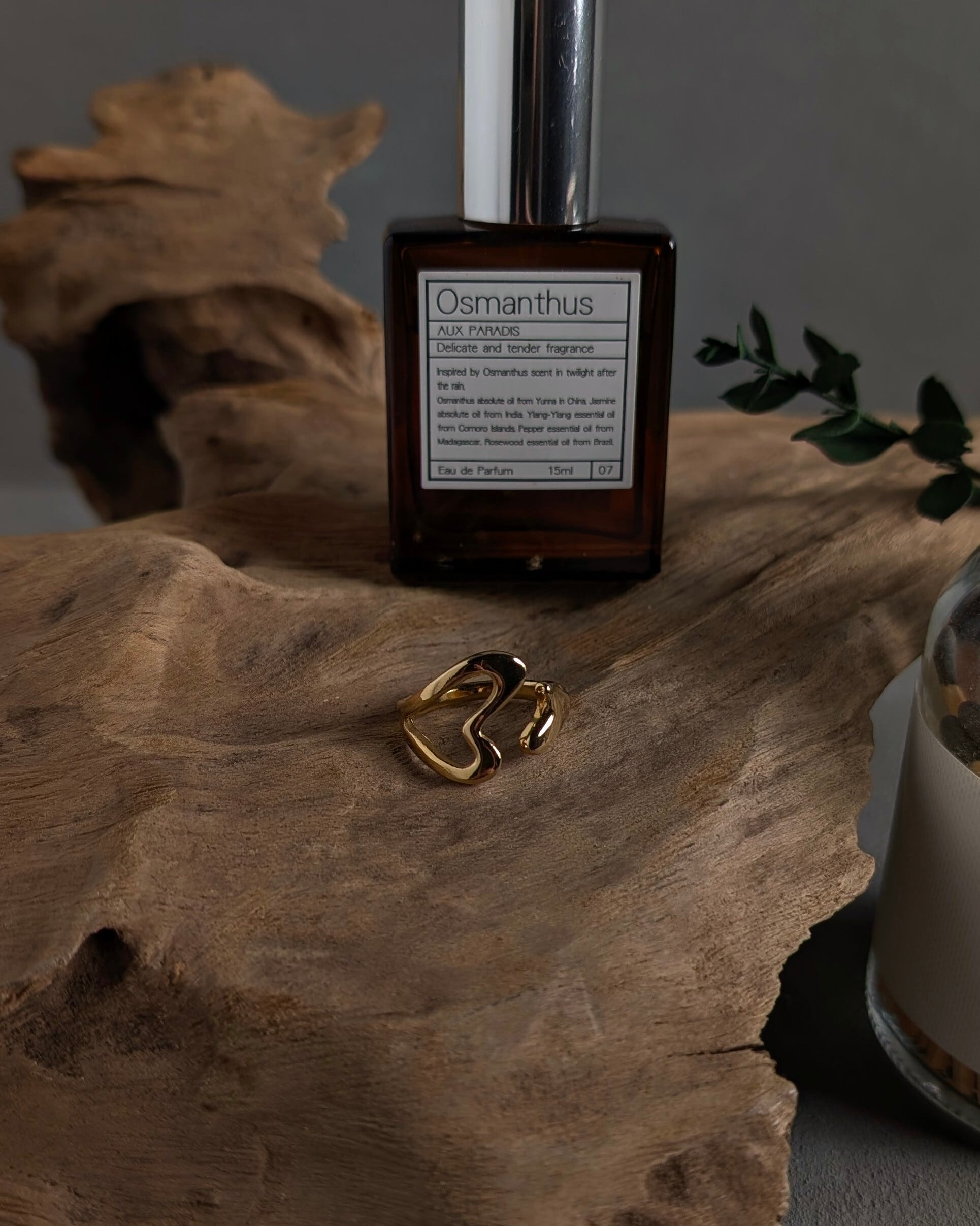 03. 指を包む左右の形の違うハートが個性的で、人目を惹きます