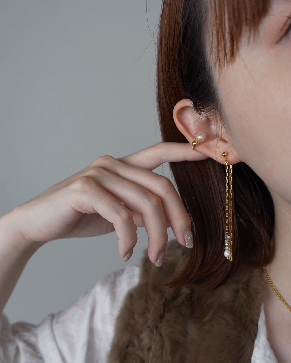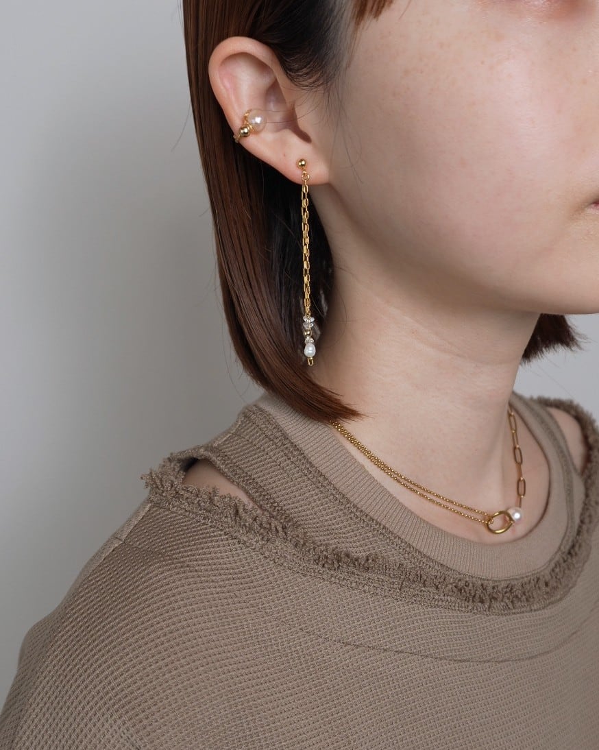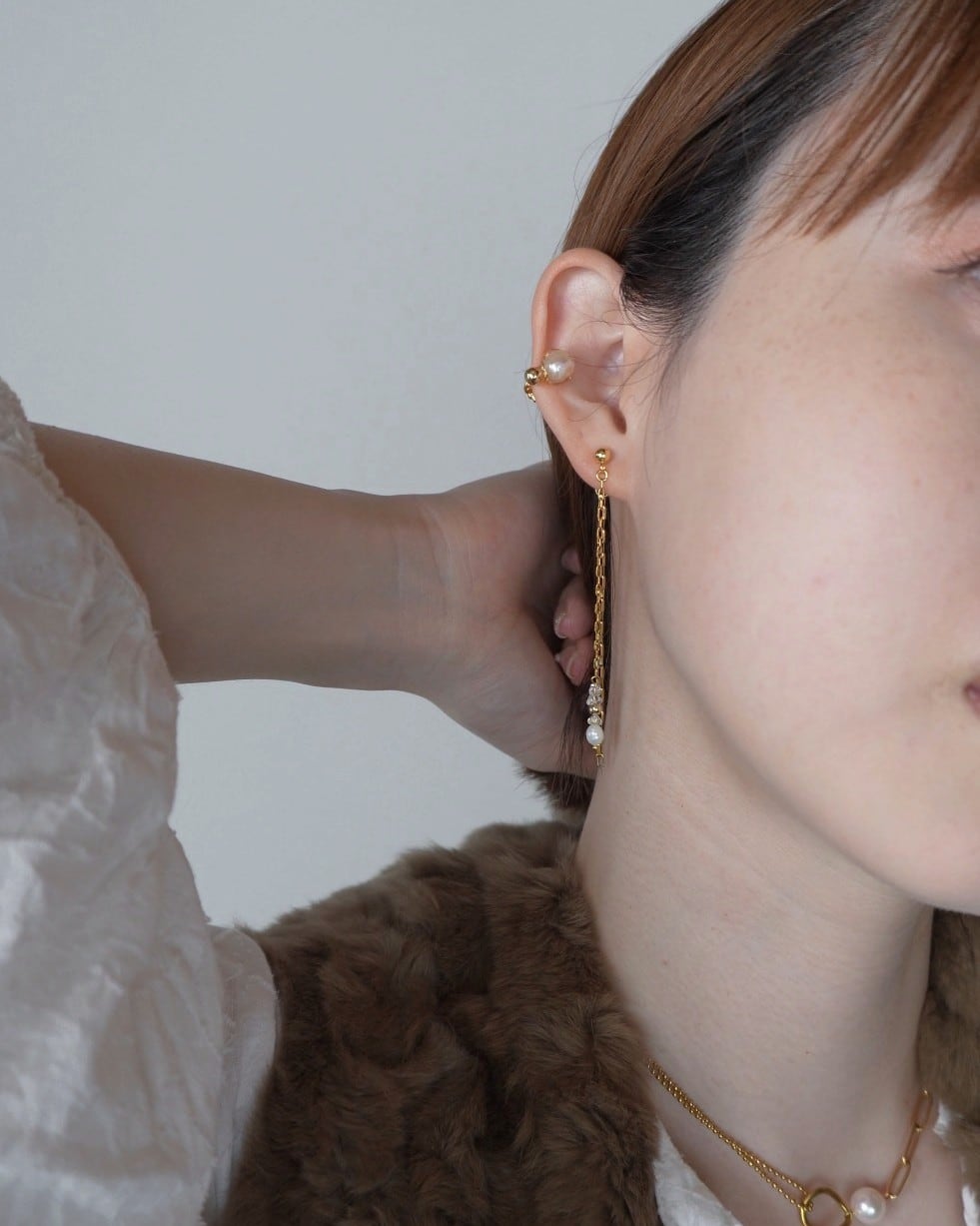 02. 耳後ろでもチェーンがシャラっと揺れてくれるので華やかな印象で着けれます