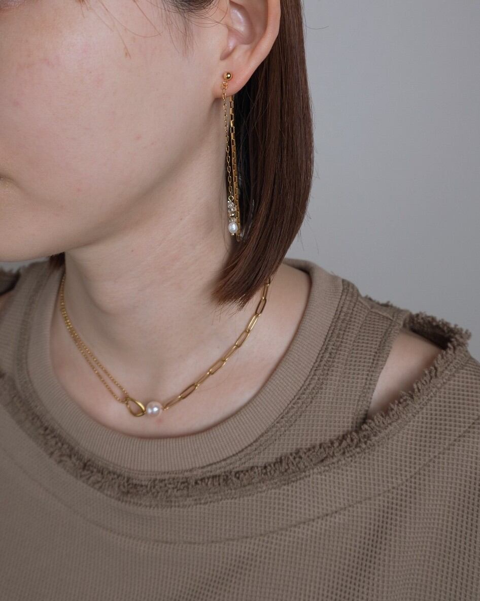 【ゴールド】glass pearl & double chain