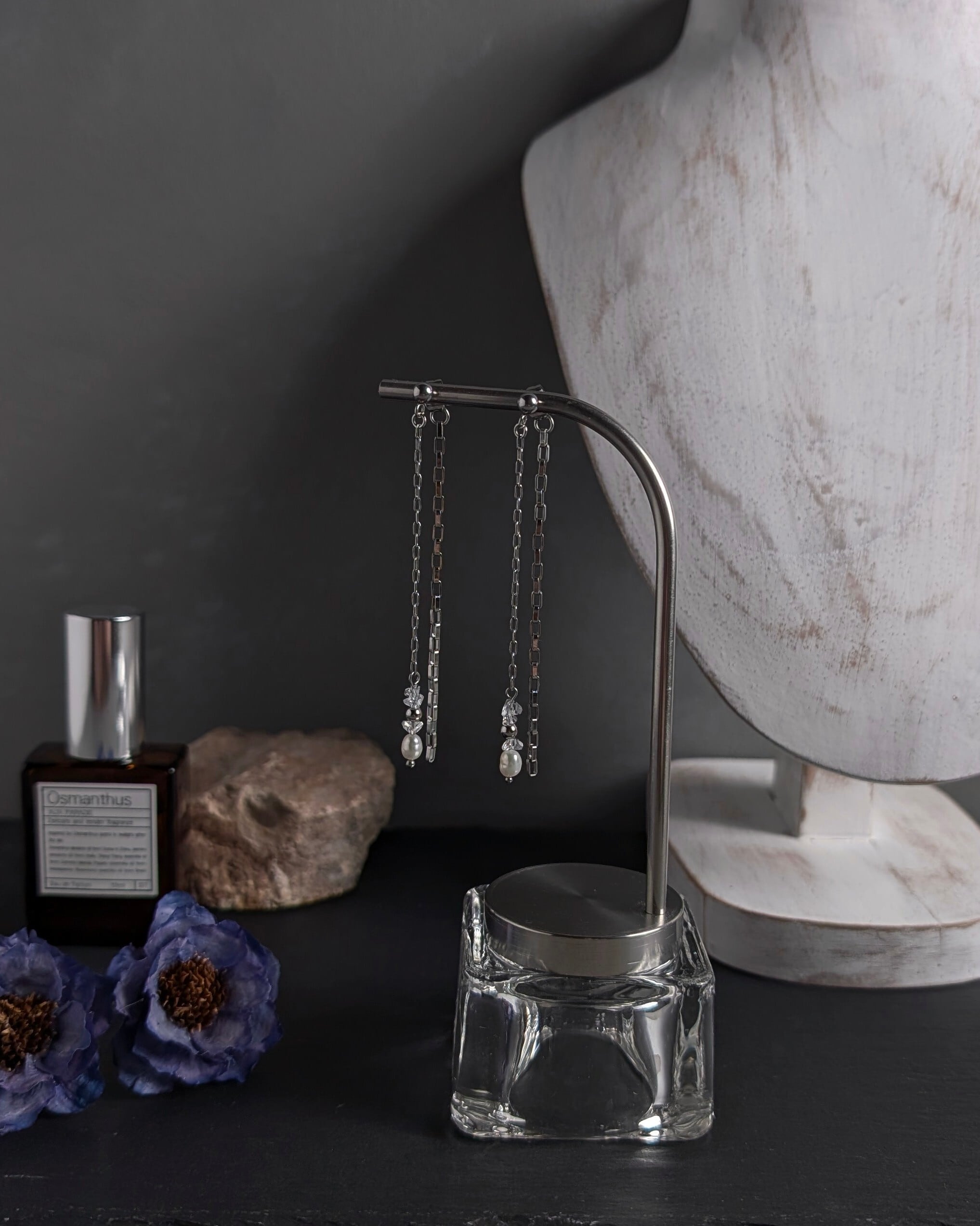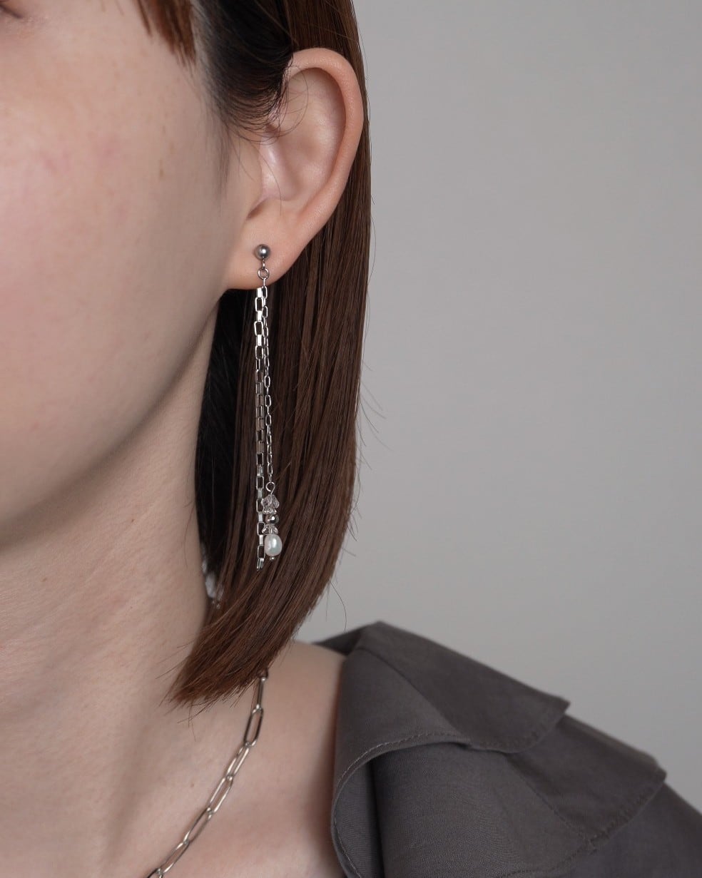 02. 耳後ろでもチェーンがシャラっと揺れてくれて華やかな印象で着けれます。